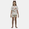 Conjunto pijama manga curta, estampa local na parte frontal, e short com estampa corrida, confeccionados em tecido meia-malha 100% algodão.