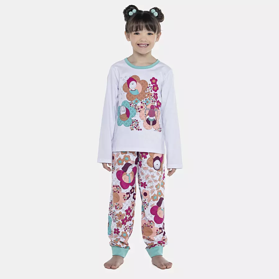 Pijama Feminino Kids Manga Longa e Calça Com Punhos