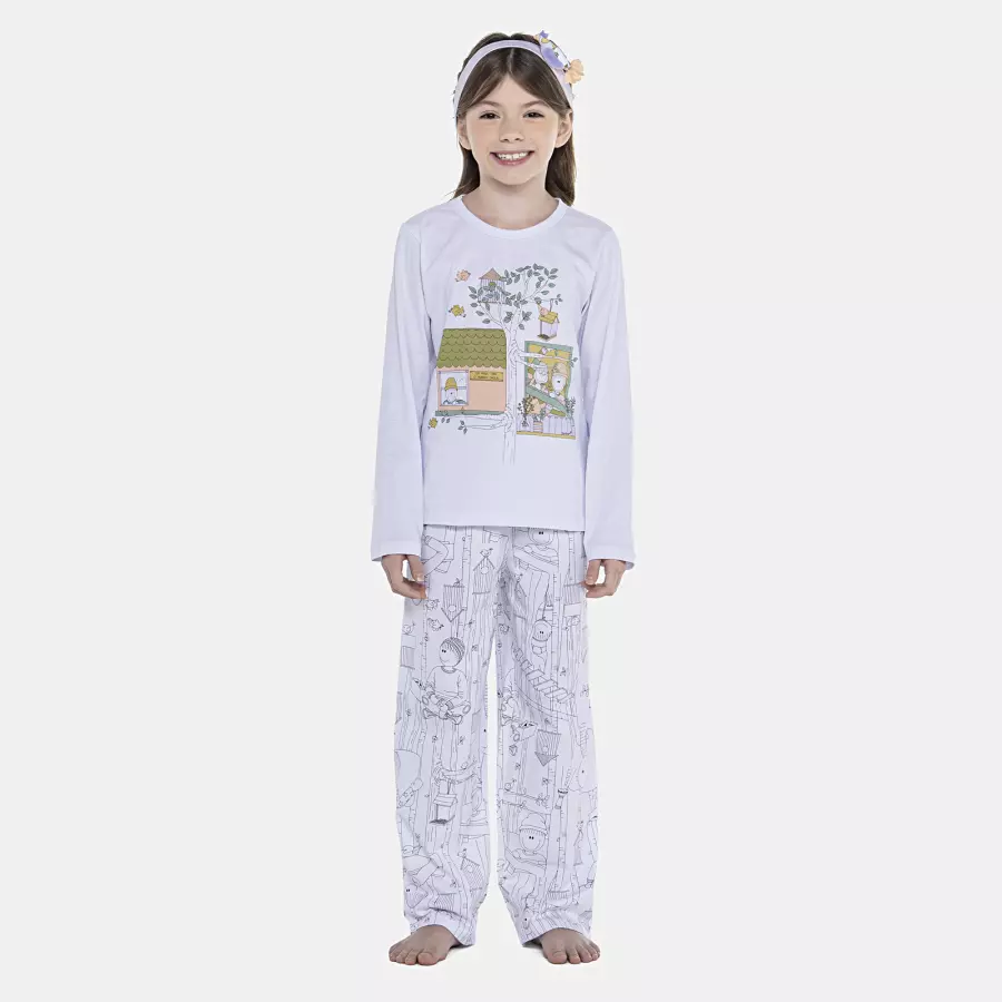 Pijama Feminino Kids Manga Longa e Calça