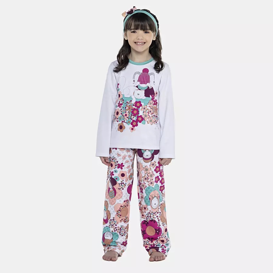 Pijama Feminino Kids Manga Longa e Calça Moletinho