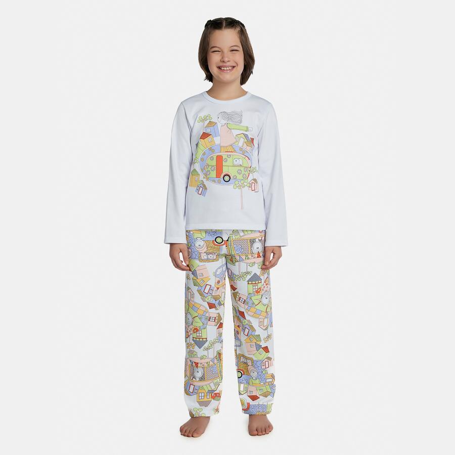 Pijama Feminino Kids Manga Longa e Calça Moletinho