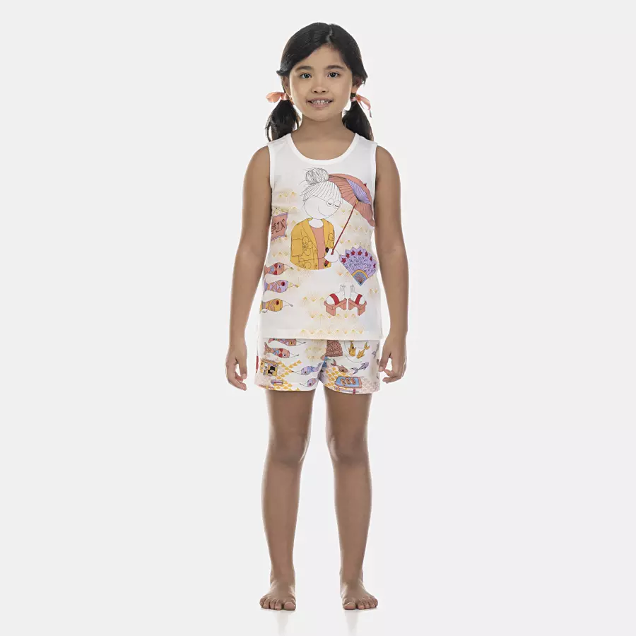 Conforto e diversão para embalar os sonhos. Este pijama regata tem o toque suave do 100% algodão para garantir uma noite tranquila, com uma estampa exclusiva e cheia de personalidade que vai encantar as pequenas.