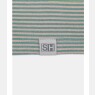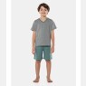 Pijama manga curta, decote V, em tecido listrado, etiqueta e bermuda em tecido colorido, confeccionados em tecido meia-malha 100% algodão.