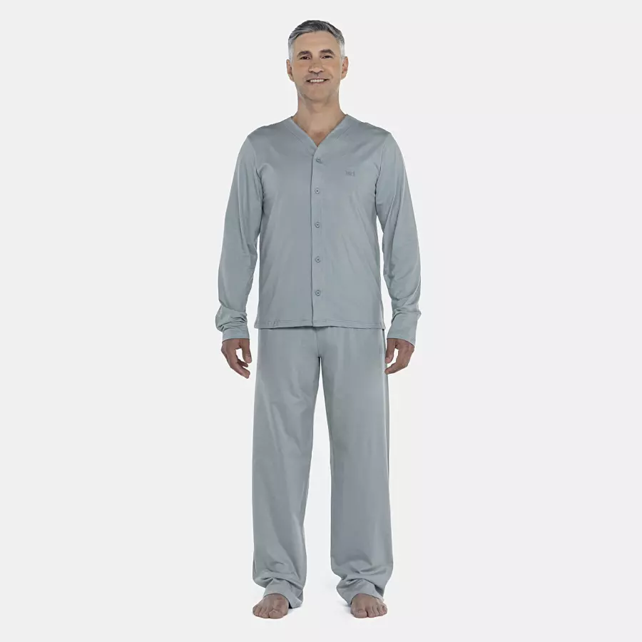 Pijama Masculino Adulto Manga Longa Com Abertura Frontal e Calça