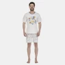 Conjunto pijama manga curta com estampa local com detalhe em viés na gola e short com estampa corrida, confeccionados em tecido meia-malha 100% algodão.