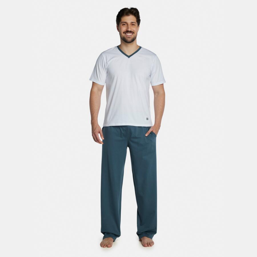 Pijama Masculino Adulto Manga Curta Decote V e Calça