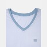 Conjunto pijama manga curta, decote V e detalhe em viés, com bordado frontal e short em tecido colorido, confeccionados em tecido meia-malha 100% algodão.