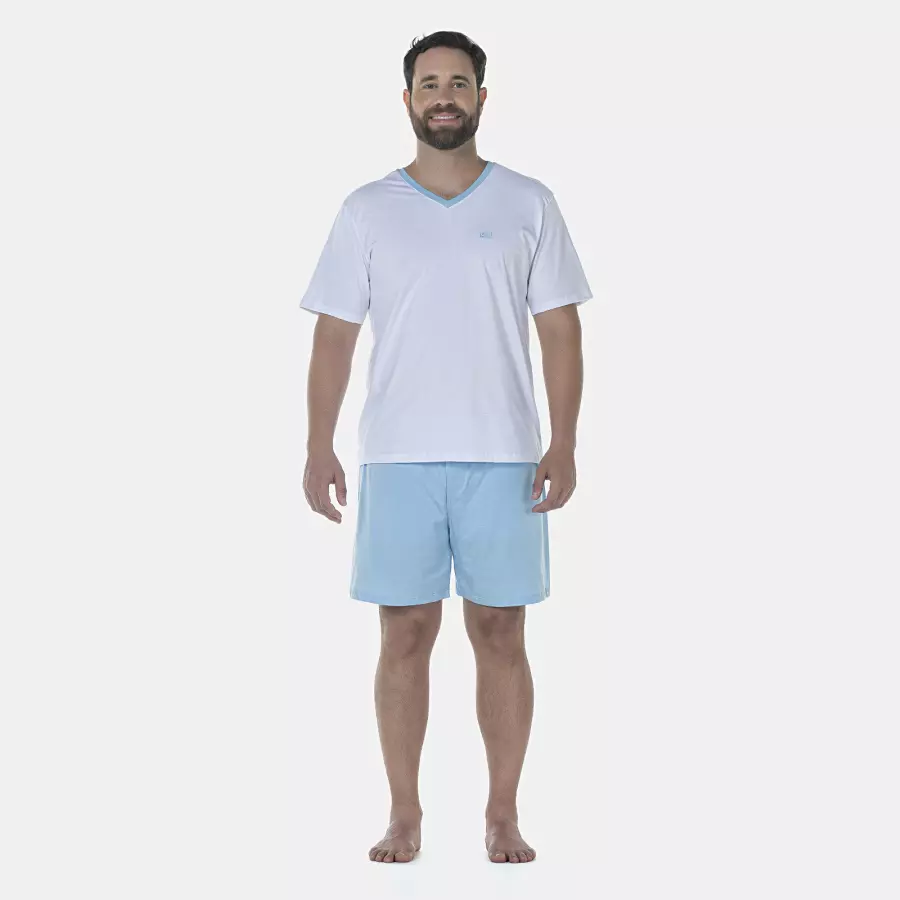 Pijama Masculino Adulto Manga Curta e Short Decote V