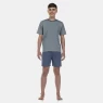 Conjunto pijama manga curta com tecido colorido liso com detalhe em viés na gola e short com tecido colorido liso, confeccionados em tecido meia-malha 100% algodão.