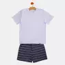 Conjunto pijama manga curta em tecido liso e etiqueta e short com tecido colorido listrado, confeccionados em tecido meia-malha 100% algodão.