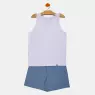 Conjunto pijama regata em tecido liso e etiqueta e short com tecido colorido liso, confeccionados em tecido meia-malha 100% algodão.