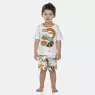 Conjunto pijama manga curta com estampa local e detalhe em viés com fechamento em tic-tac na gola para facilitar a vestibilidade e bermuda com estampa corrida, confeccionados em tecido meia-malha 100% algodão.
