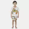 Conjunto pijama manga curta com estampa local e detalhe em viés com fechamento em tic-tac na gola para facilitar a vestibilidade e bermuda com estampa corrida, confeccionados em tecido meia-malha 100% algodão.