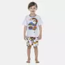 Conjunto pijama manga curta com estampa local e detalhe em viés com fechamento em tic-tac na gola para facilitar a vestibilidade e bermuda com estampa corrida, confeccionados em tecido meia-malha 100% algodão.