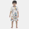 Conjunto pijama manga curta com estampa local e detalhe em viés e fechamento em tic-tac na gola para facilitar a vestibilidade e bermuda com estampa corrida, confeccionados em tecido meia-malha 100% algodão.