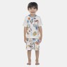 Conjunto pijama manga curta com estampa local e detalhe em viés e fechamento em tic-tac na gola para facilitar a vestibilidade e bermuda com estampa corrida, confeccionados em tecido meia-malha 100% algodão.