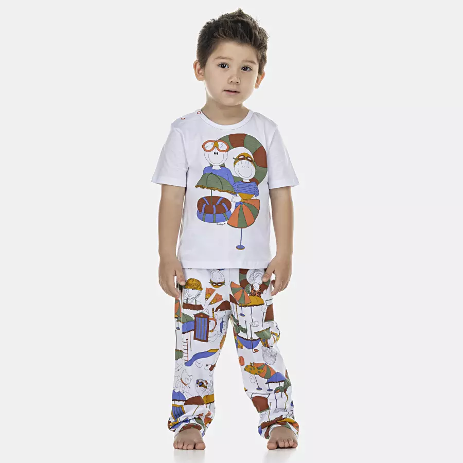 Conjunto pijama manga curta com estampa local e fechamento em tic-tac na gola para facilitar a vestibilidade e calça com estampa corrida, confeccionados em tecido meia-malha 100% algodão.