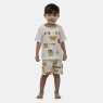 Conjunto pijama manga curta com estampa local, com detalhe em viés e fechamento em tic-tac na gola para facilitar a vestibilidade e bermuda com estampa corrida, confeccionados em tecido meia-malha 100% algodão.