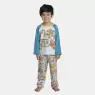 Conjunto pijama manga longa com estampa local e tecido colorido liso nas mangas , com detalhe em viés na gola e calça com estampa corrida, confeccionados em tecido meia-malha 100% algodão.