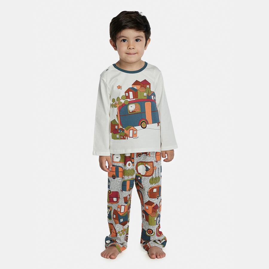 Conjunto pijama manga longa com estampa local, com detalhe em viés e fechamento em tic-tac na gola para facilitar a vestibilidade e calça com estampa corrida, confeccionados em tecido meia-malha 100% algodão.