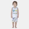 Conjunto pijama regata com estampa local, com detalhe em viés na gola e nas cavas, e bermuda com estampa corrida, confeccionados em tecido meia-malha 100% algodão.