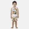 Conjunto pijama regata com estampa local e bermuda com estampa corrida, confeccionados em tecido meia-malha 100% algodão.