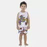 Conjunto pijama regata com estampa local e bermuda com estampa corrida, confeccionados em tecido meia-malha 100% algodão.