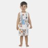 Conjunto pijama regata com estampa local e bermuda com estampa corrida, confeccionados em tecido meia-malha 100% algodão.