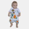 Conjunto pijama manga curta com estampa local, com detalhe em viés e fechamento em tic-tac na gola para facilitar a vestibilidade e short com estampa corrida, confeccionados em tecido meia-malha 100% algodão.