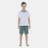 Conjunto pijama manga curta em tecido liso e detalhe em viés e bermuda com tecido colorido liso, confeccionados em tecido meia-malha 100% algodão.