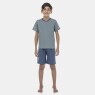 Conjunto pijama manga curta com tecido colorido liso com detalhe em viés na gola e bermuda com tecido colorido liso, confeccionados em tecido meia-malha 100% algodão.