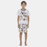 Conjunto pijama manga curta com estampa local e detalhe em viés na gola e bermuda com estampa corrida, confeccionados em tecido meia-malha 100% algodão.