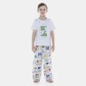 Conjunto pijama manga curta com estampa local, detalhe em viés na gola, e calça com estampa corrida, confeccionados em meia-malha 100% algodão.