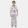 Conjunto pijama manga curta com estampa local e detalhe em viés na gola e calça com estampa corrida, confeccionados em meia-malha 100% algodão.