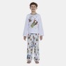 Conjunto pijama manga longa com estampa localizada e detalhe em viés na gola, e calça com estampa corrida, confeccionados em meia-malha 100% algodão.