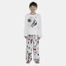 Conjunto pijama manga longa com estampa localizada e detalhe em viés na gola, e calça com estampa corrida, confeccionados em meia-malha 100% algodão.