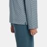 Conjunto pijama manga longa com tecido listrado e detalhe em viés na gola e calça em tecido colorido liso, confeccionados em tecido meia-malha 100% algodão.