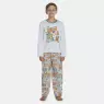 Conjunto pijama manga longa com estampa local e detalhe em viés na gola e calça em tecido com estampa corrida, confeccionados em tecido meia-malha 100% algodão.