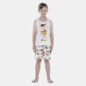Conjunto pijama regata com estampa local e bermuda com estampa corrida, confeccionados em tecido meia-malha 100% algodão.