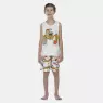 Conjunto pijama regata com estampa local e bermuda com estampa corrida, confeccionados em tecido meia-malha 100% algodão.