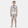Conforto e estilo para os pequenos. Pijama feito em meia-malha de puro algodão, que oferece um toque suave e permite que a pele respire. A regata estilo machão tem acabamento contrastante e estampa exclusiva. A bermuda com padronagem coordenada possui elástico macio na cintura, que não incomoda. Perfeito para relaxar com personalidade.