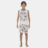 Para noites cheias de aventura e conforto! Este conjunto em malha 100% algodão é super macio e respirável. A regata machão tem estampa divertida e viés colorido, combinando com a bermuda. Perfeito para brincar e ter um sono tranquilo.
