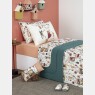 Edredom tamanho berço, sendo uma das faces em tecido com estampa corrida com personagem, e a outra em tecido colorido liso, confeccionado em tecido meia-malha 100% algodão e enchimento 100% poliéster. Não acompanham outras fronhas avulsas, almofadas, lençol, boneco e outros acessórios expostos na imagem. Imagem meramente ilustrativa.