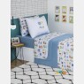 Edredom tamanho berço, sendo uma das faces em tecido com estampa corrida com personagem, e a outra em tecido colorido liso, confeccionado em tecido meia-malha 100% algodão e enchimento 100% poliéster. Não acompanham outras fronhas avulsas, almofadas, lençol, boneco e outros acessórios expostos na imagem. Imagem meramente ilustrativa.