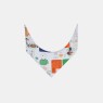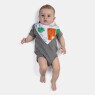 Babador com fechamento por laço, sendo uma face com estampa corrida, confeccionado em tecido meia-malha 100% algodão e na outra, tecido liso atoalhado (85% algodão e 15% poliéster) com possibilidade de uso dos dois lados.