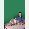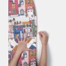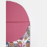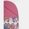 Manta tamanho solteiro, abertura na lateral por zíper, sendo uma face em tecido estampado com personagem e a outra em tecido colorido, ambos meia-malha 100% algodão e enchimento 100% poliéster.