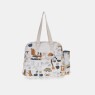 Bolsa de bebê, com bolsos externos, confeccionada em lona com estampa corrida e alças de gorgorão. Dimensões da bolsa: 32cm X 38,5cm x 10cm (altura x largura x comprimento).