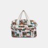 Bolsa de viagem, com bolsos externos, confeccionada em lona estampada que brilha no escuro e alças de gorgorão. Dimensões da bolsa: 34cm X 50cm x 21,5cm (altura x largura x comprimento).