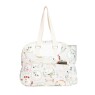 Bolsa de bebê, com bolsos externos, confeccionada em lona com estampa corrida e alças de gorgorão. Dimensões da bolsa: 32cm X 38,5cm x 10cm (altura x largura x comprimento).