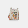 Mochila com fechamento em zíper, bolsos externos, alças reguláveis e com estampa corrida. Confeccionado em tecido lona 100% algodão. Dimensões da bolsa: 38cm X 29cm (altura x largura).